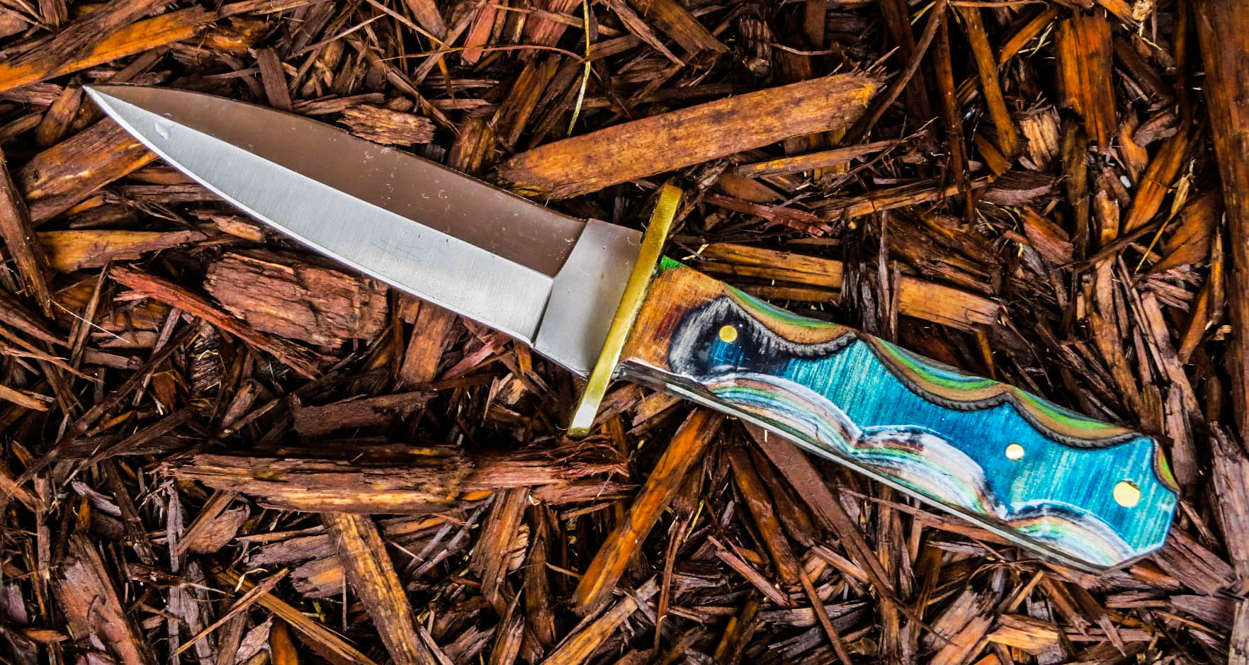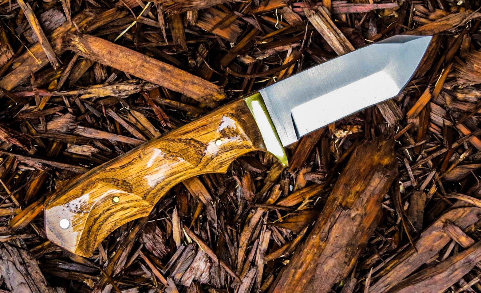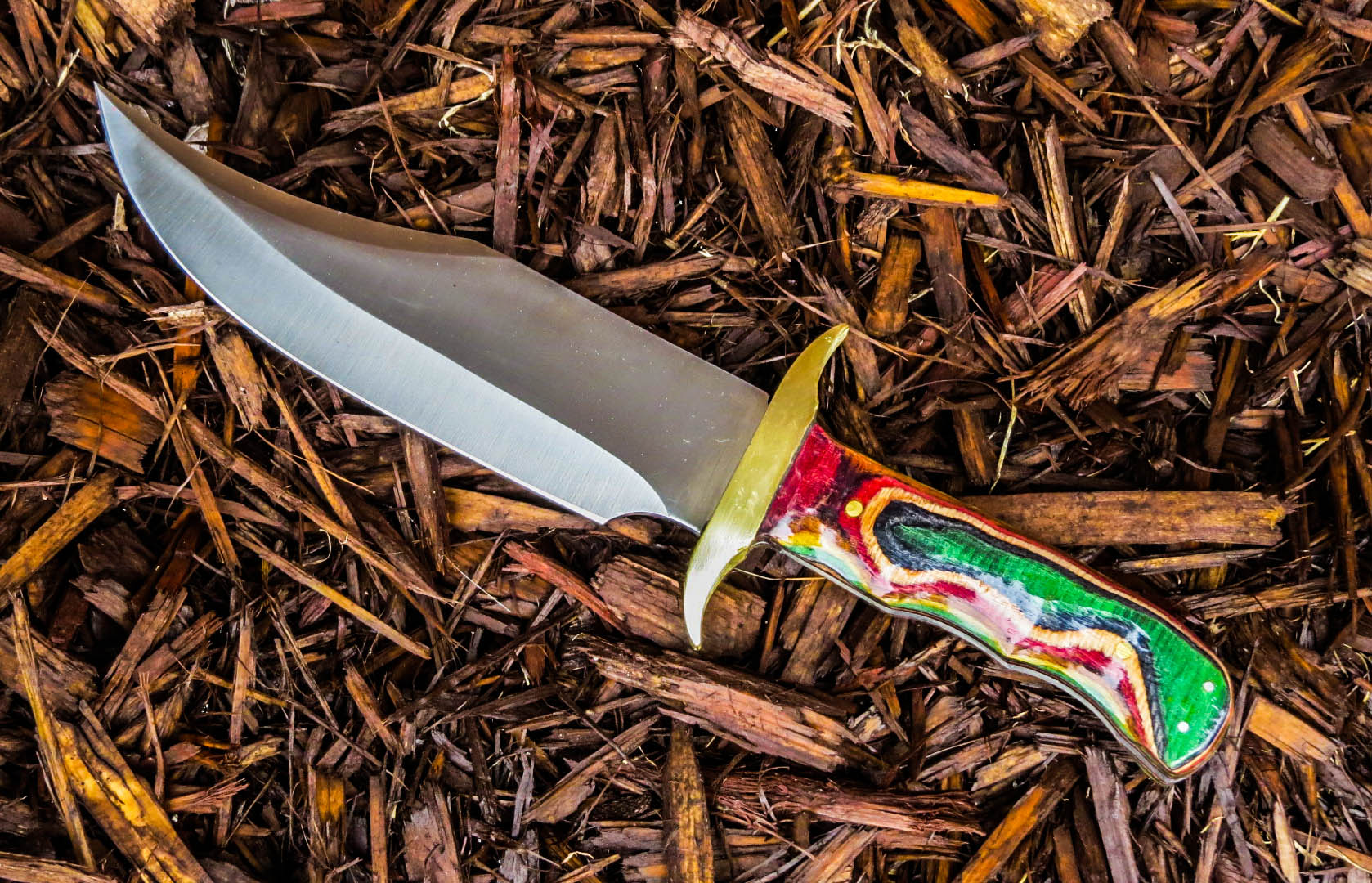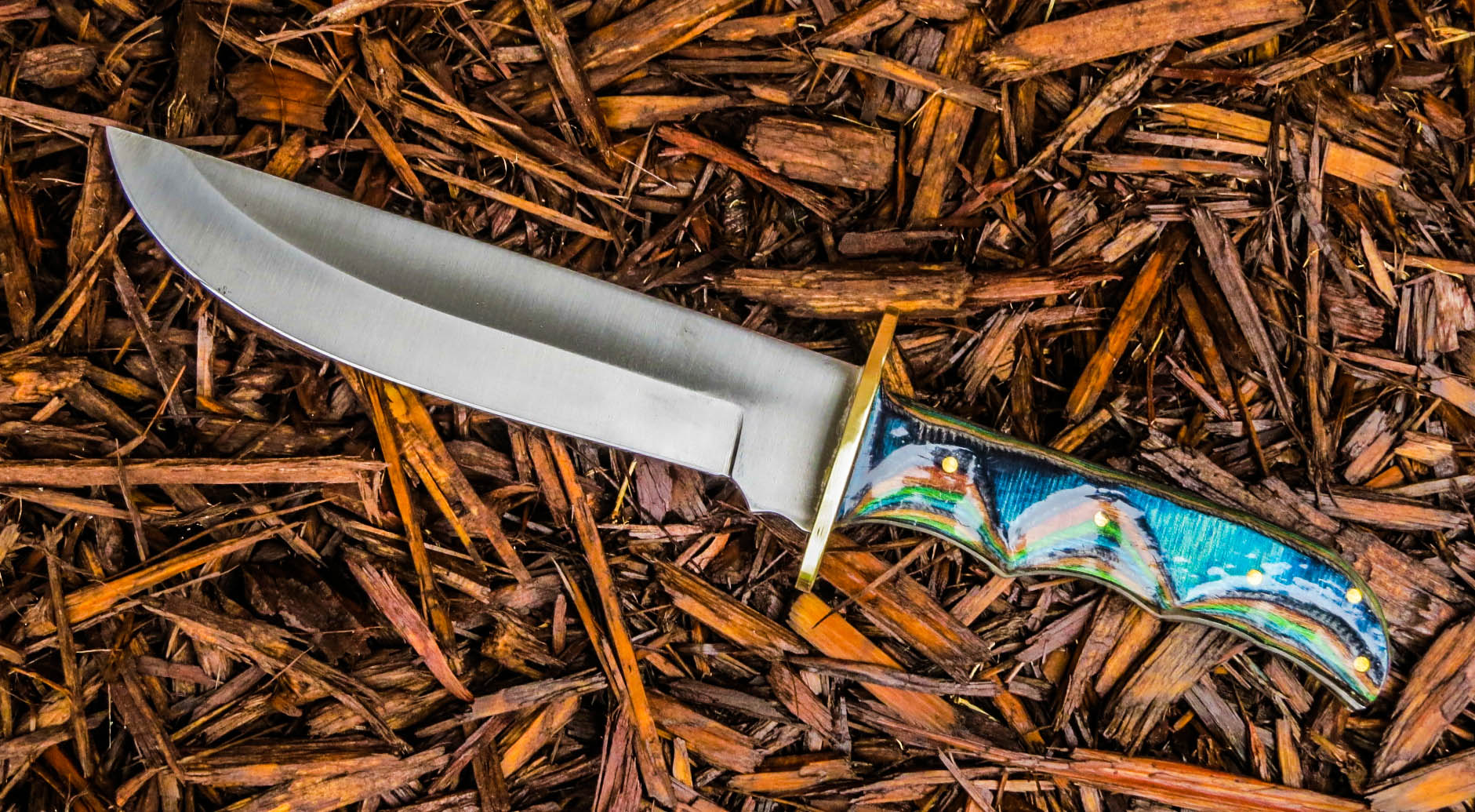 3. No longer available Full Tang Stubby Skinner Blade Knife. Stainless steel Short Skinner 2 1/8 inch blade. Full tang, brass guard, Dymondwood handle, total weight 7.4 ounces, total overall length 5 5/8 inches.