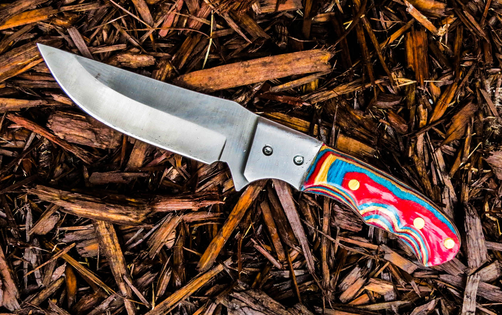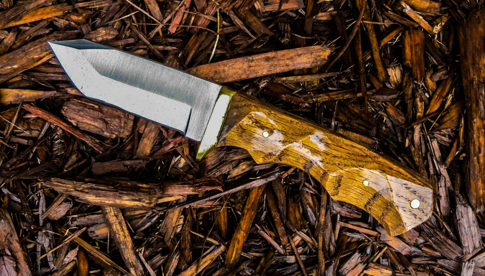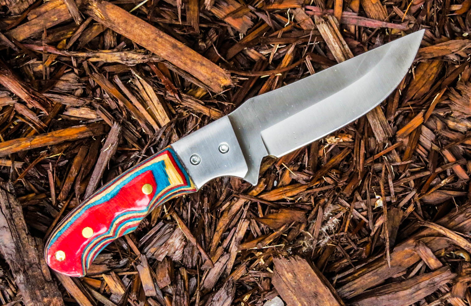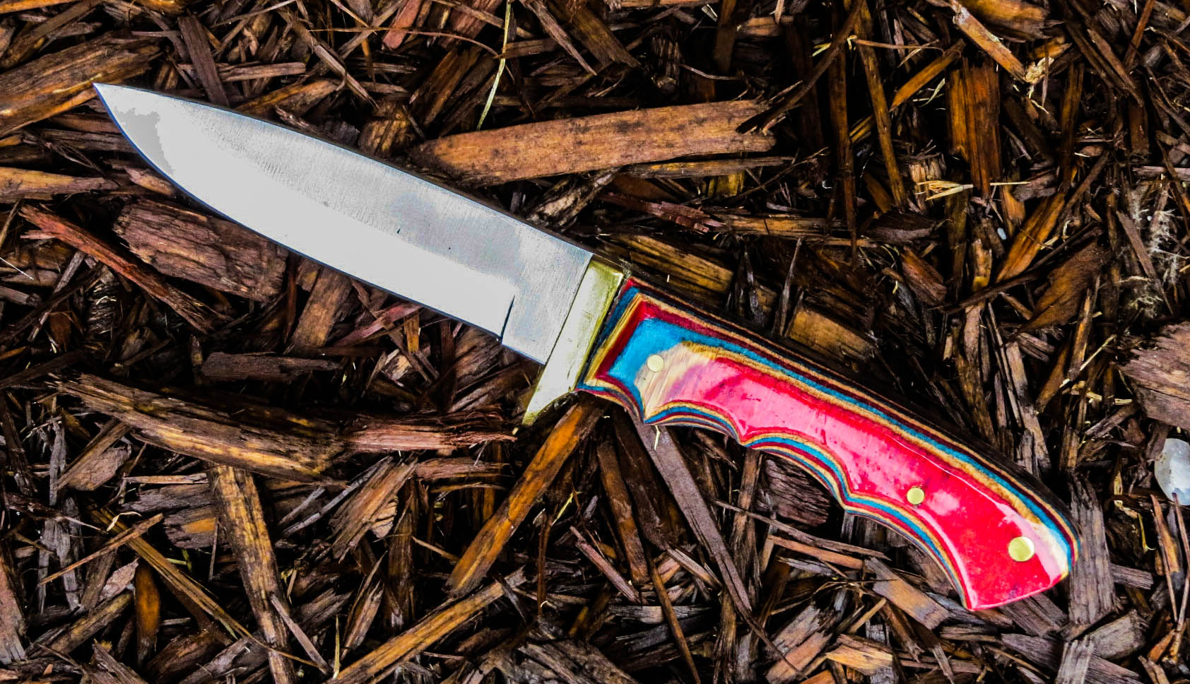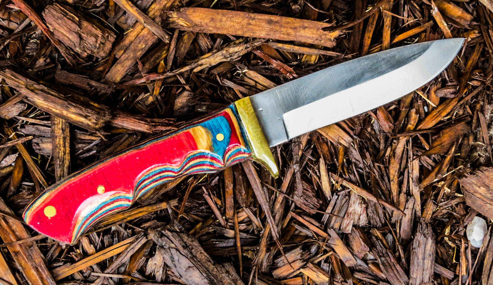 3. No longer available Full Tang Stubby Skinner Blade Knife. Stainless steel Short Skinner 2 1/8 inch blade. Full tang, brass guard, Dymondwood handle, total weight 7.4 ounces, total overall length 5 5/8 inches.