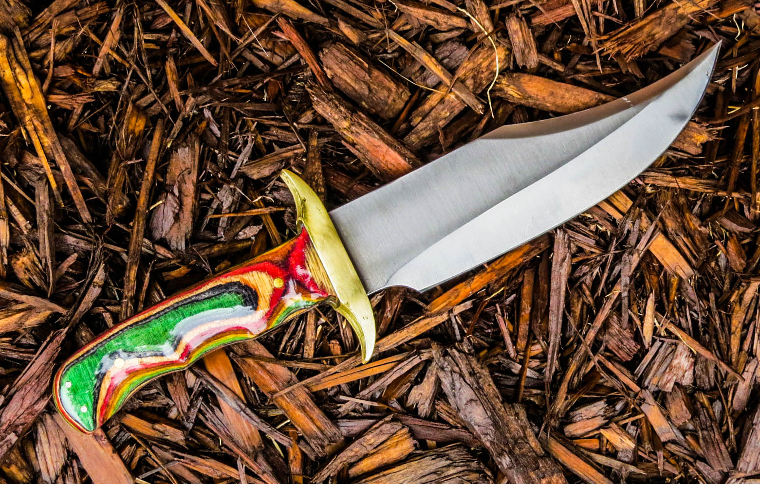 2. No longer available. Full Tang Guthook Blade Knife length 4 3/4 inches. Stainless steel construction, slightly sharpened edge, multiple rivet holes, attached brass guard, Dymondwood handle, item weight 0.3 ounces, total length 4 3/4 inches.